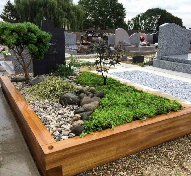 Les pompes funèbres Poulichot offrent des services de création et de conception de monuments funéraires paysagers uniques et personnalisés. La personnalisation de votre tombe paysagère, avec l’utilisation de matériaux tels que le bois, la pierre ou le métal, ainsi que des plantes grasses ou vivaces, permet de créer un monument funéraire à la fois unique et contemporain.